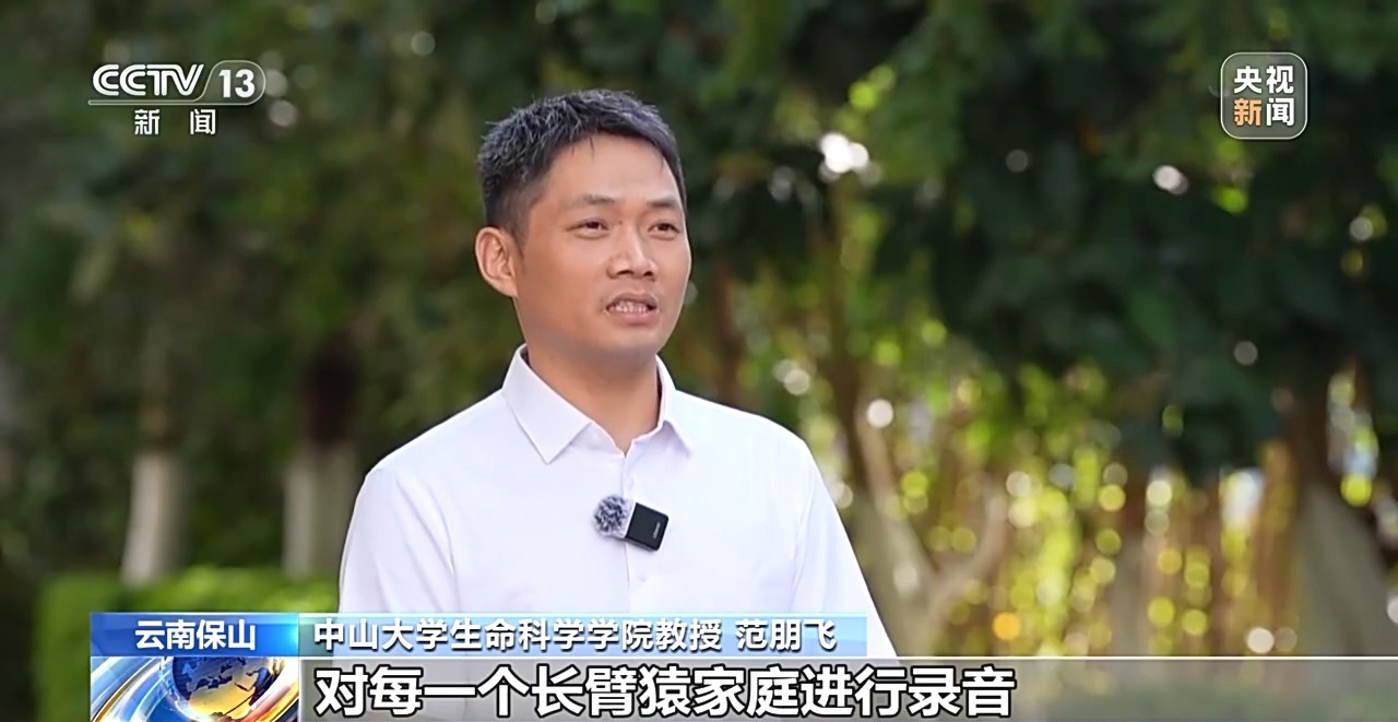 中山大学生命科学学院教授 范朋飞:通过长期的种群动态的监测,我们就可以知道长臂猿什么时候出生,什么时候找到了对象,什么时候迁走了。这样我们可以更好地更加准确地了解长臂猿种群动态,为下一步长臂猿保护工作提供科学依据。