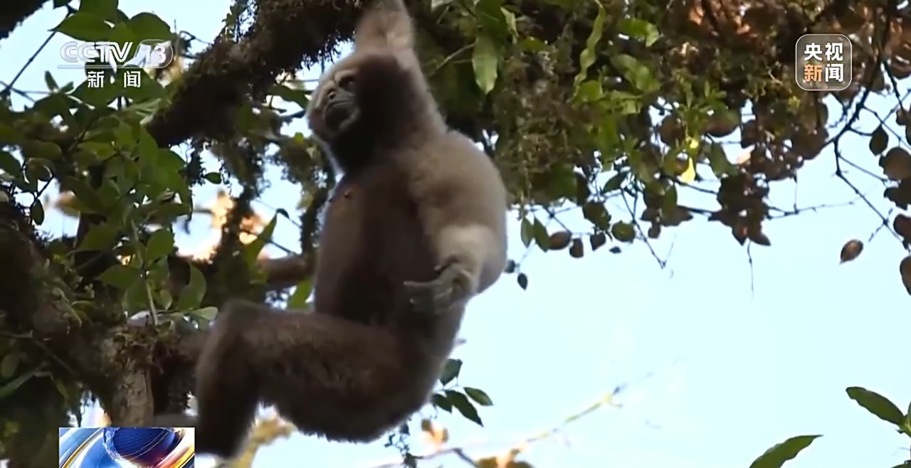 据介绍,高黎贡白眉长臂猿在我国数量不超过200只,主要分布在我国高黎贡山和缅甸北部山区。近年来,云南保山构建“定猿、定群、定人”立体监测网络,利用无人机、红外相机、声纹监测、采样分析等现代技术,建立起包含个体特征、家域范围、活动节律在内的精细档案,实现了由“粗放守护”向“智慧守护”的跨越。